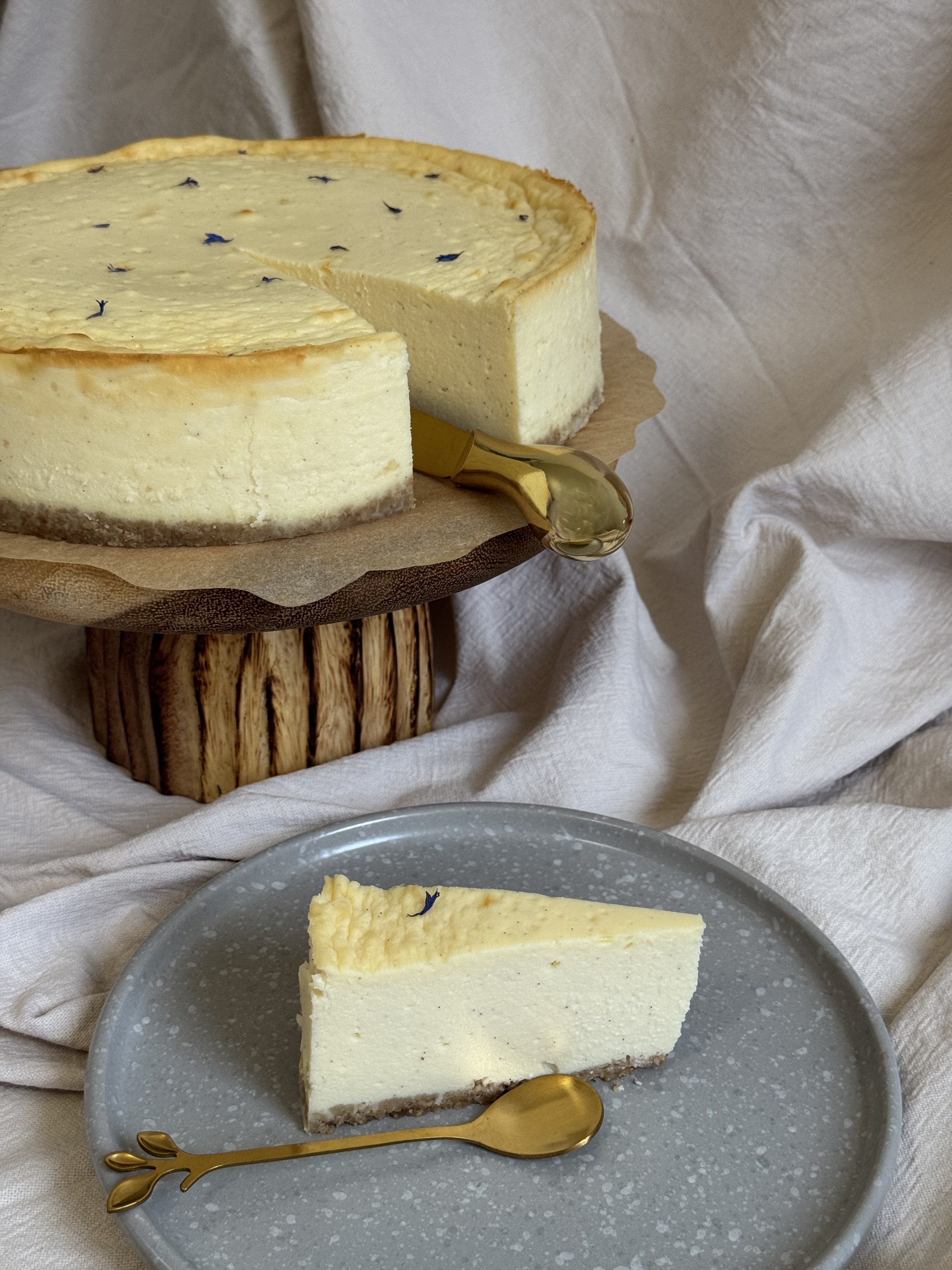 Niezwykle kremowy, pieczony na ciasteczkowym spodzie z dodatkiem prawdziwej wanilii bourbon z Madagaskaru. Klasyczny, gładki i pełen szlachetnego smaku.