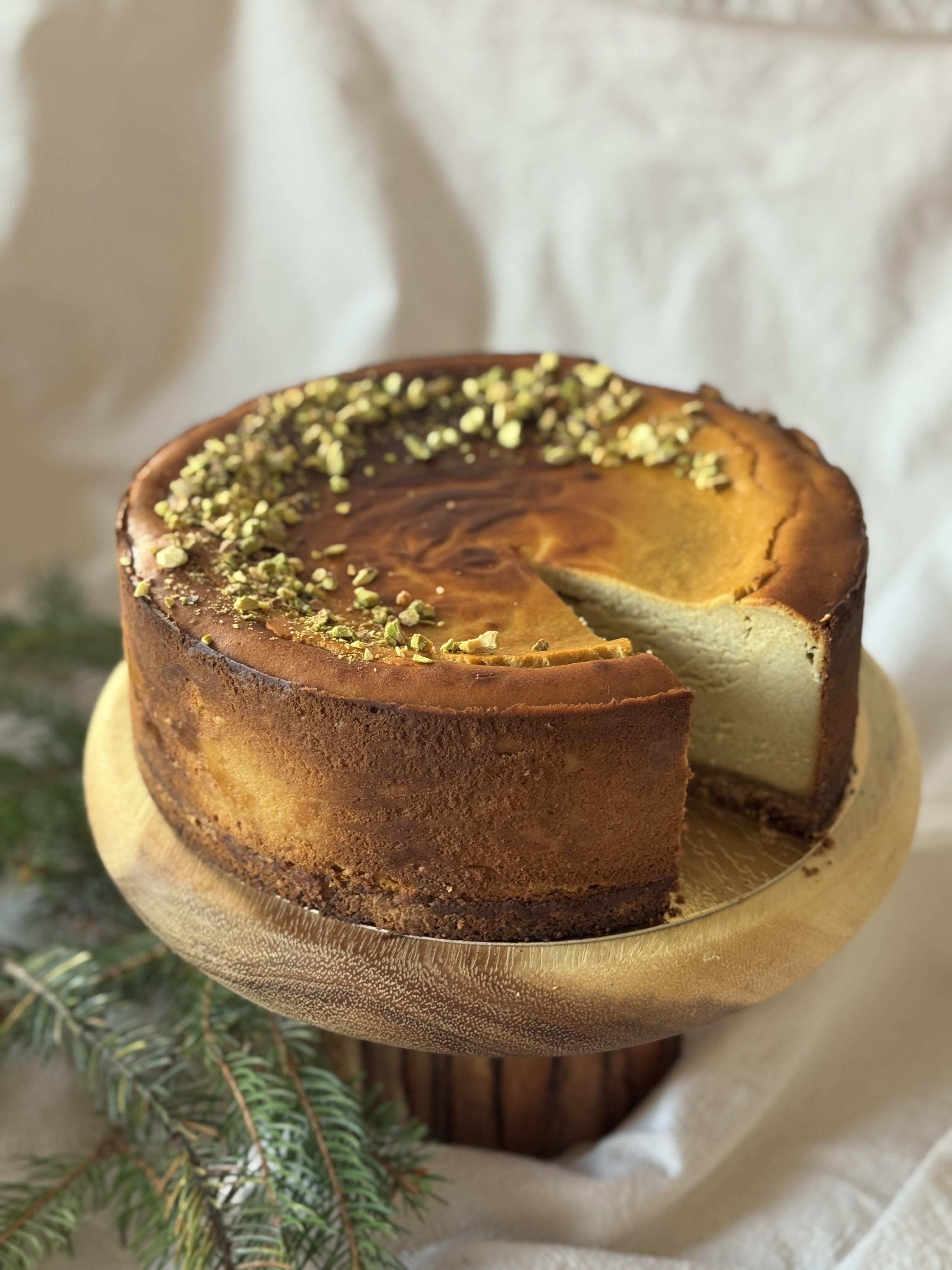Kremowy, aksamitny sernik o intensywnym pistacjowym aromacie, z charakterystycznie przypieczoną powierzchnią i chrupiącą posypką z pistacji. Idealny dla miłośników wyjątkowych smaków.