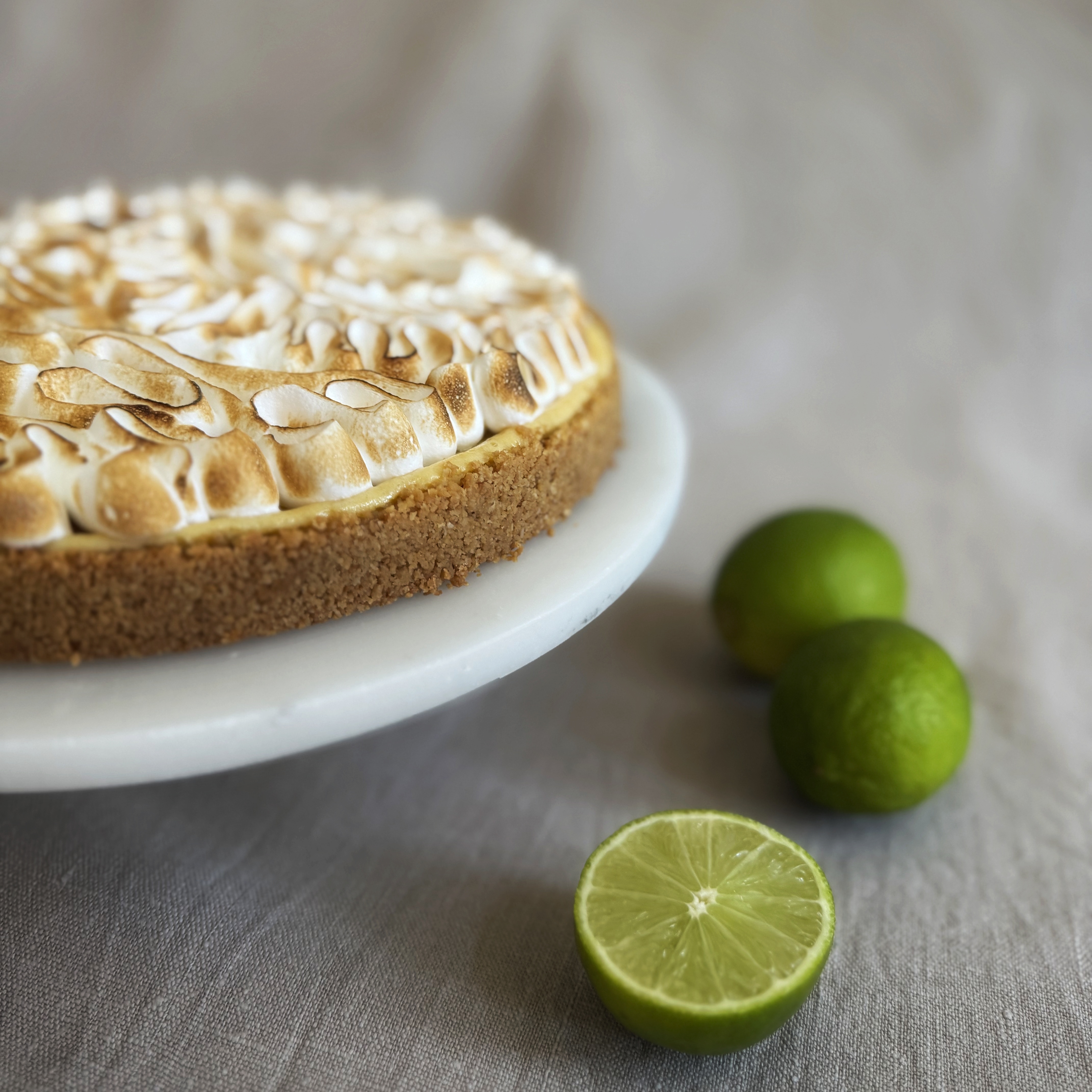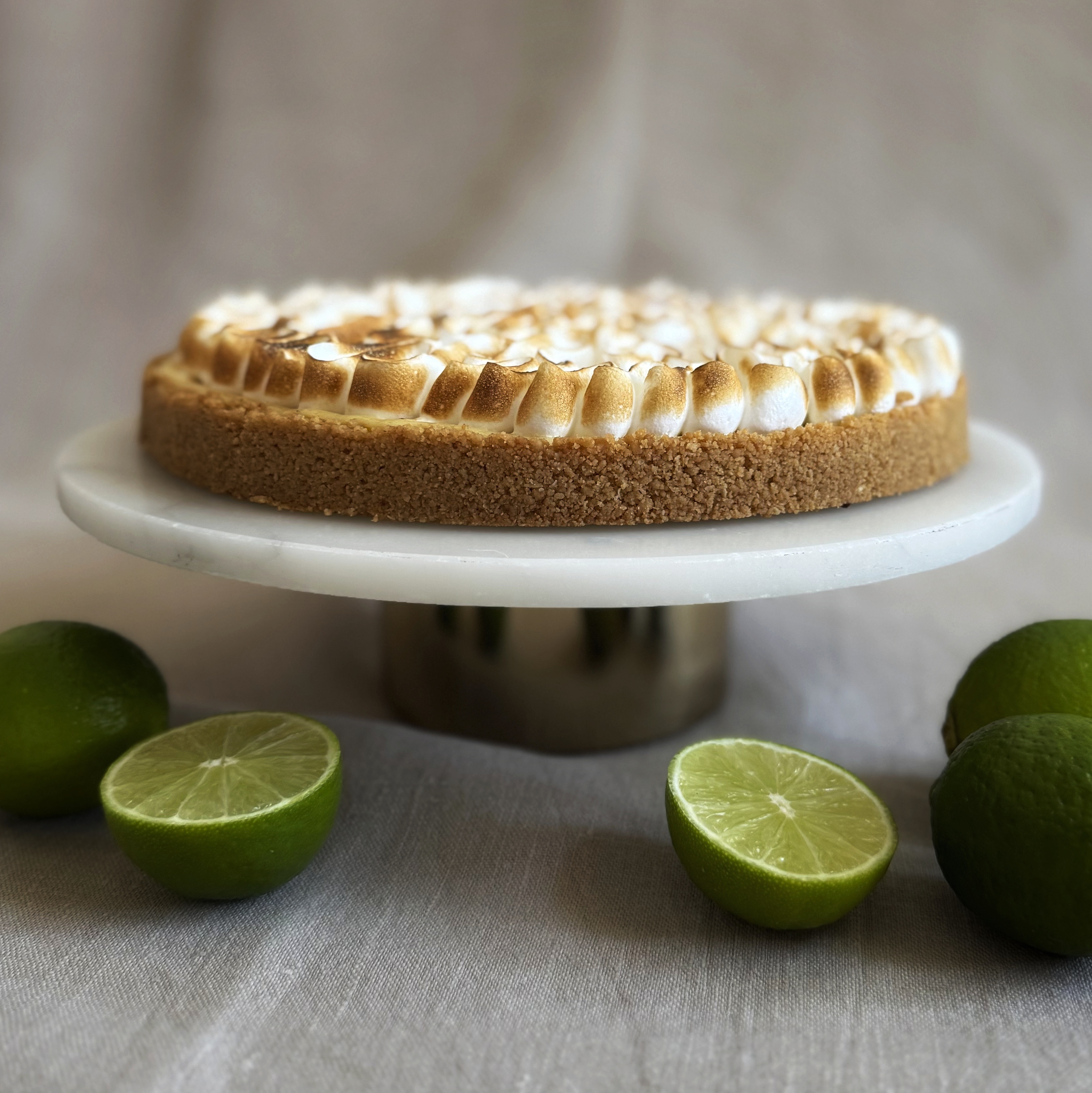 Ta tarta to harmonijne połączenie orzeźwienia i subtelnej słodyczy. Na chrupiącym spodzie z maślanych ciasteczek spoczywa intensywnie limonkowy krem – gładki, aksamitny i pełen cytrusowej świeżości. Całość wieńczy puszysta beza włoska, lekko opalona na złoto, która nadaje deserowi lekkości i wyrafinowanego charakteru.